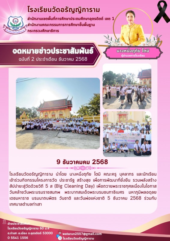 จดหมายข่าวเดือนธันวาคม 2568 กิจกรรมbig clening day