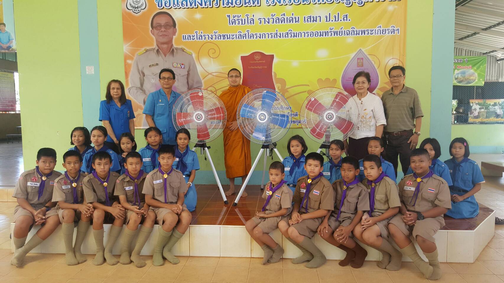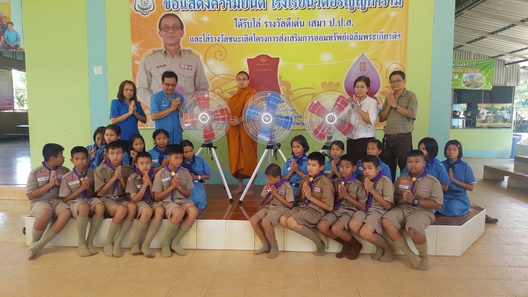 ผู้อำนวยการโรงเรียนวัดอรัญญฺิการามรับมอบพัดลม