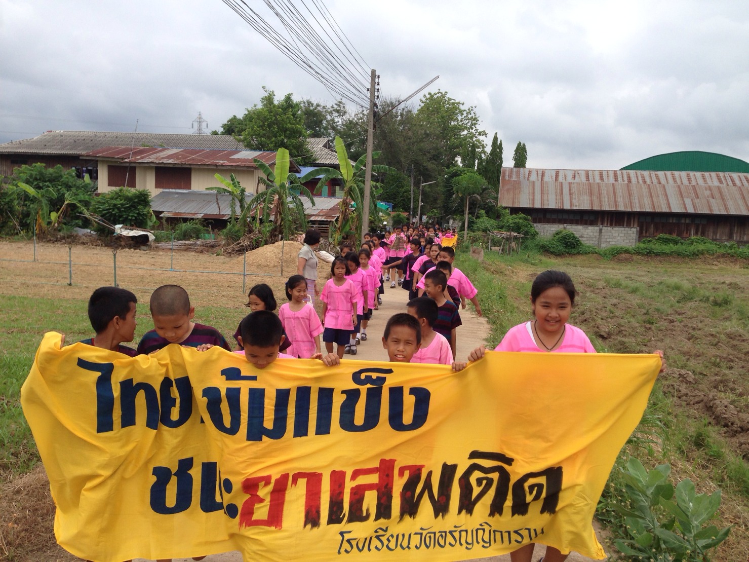 นักเรียนร่วมเดินรณรงค์ต่อต้านยาเสพติดในชุมชน