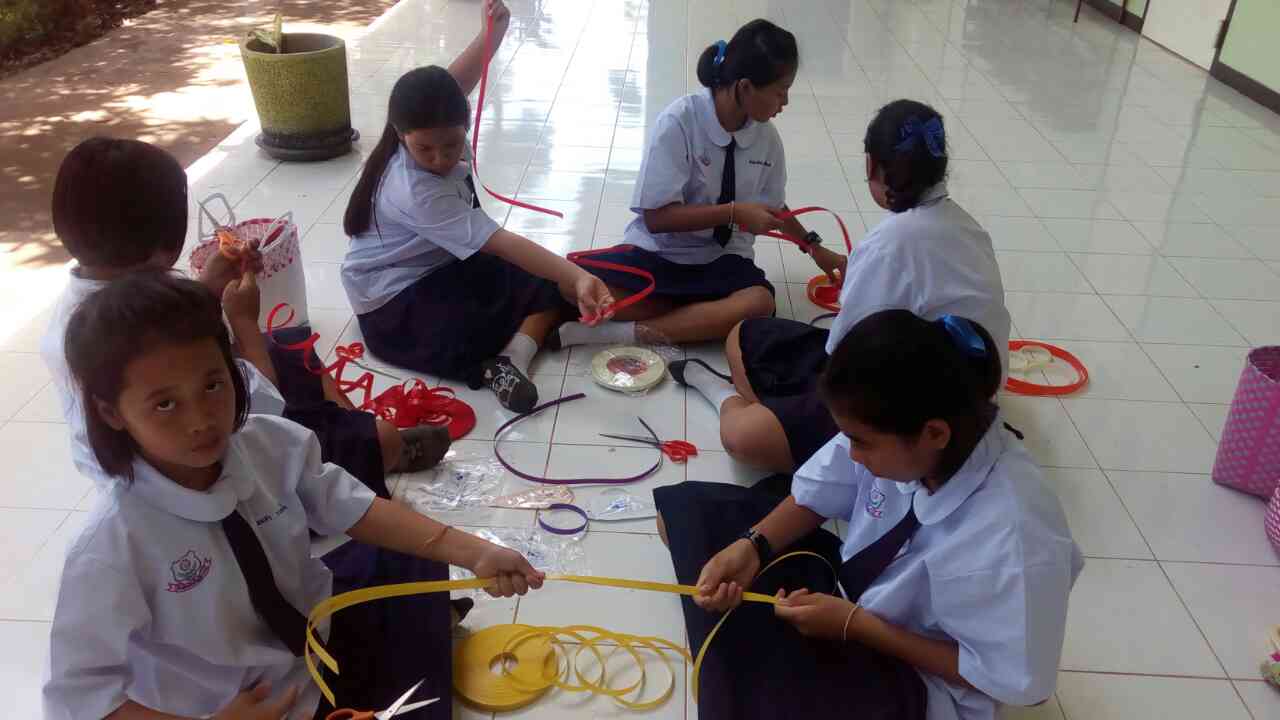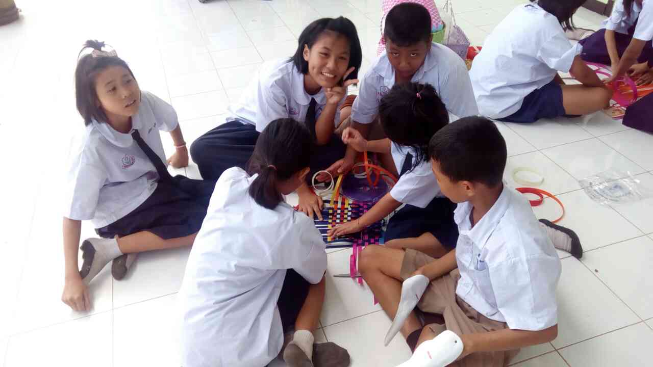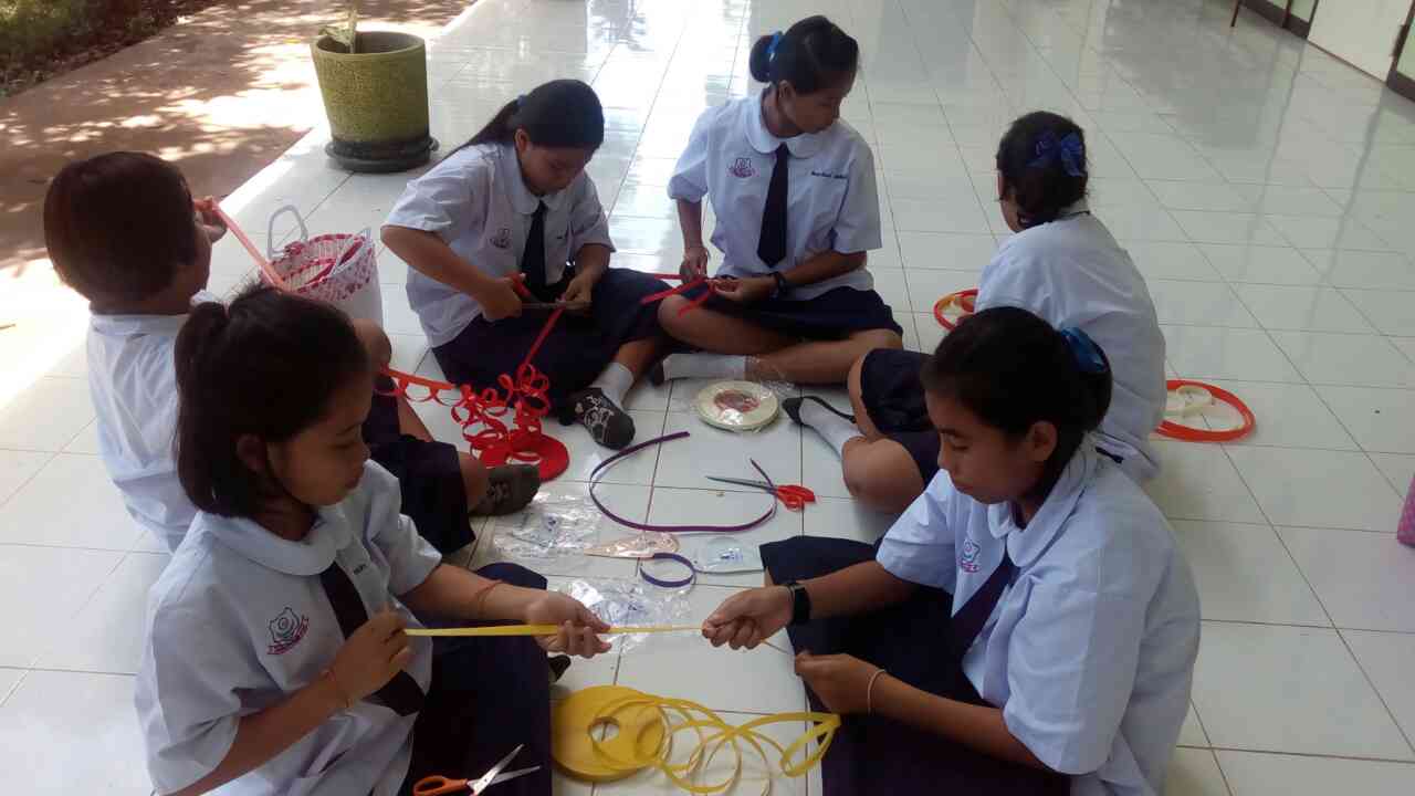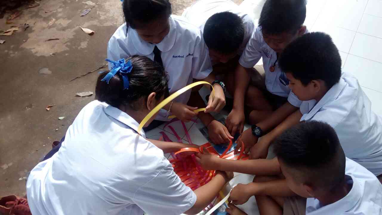 นักเรียนสานผลิตภัณฑ์จากเส้นพลาสติก กิจกรรม 1 โรงเรียน 1 อาชีพ 1ผลิตภัณฑ์