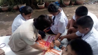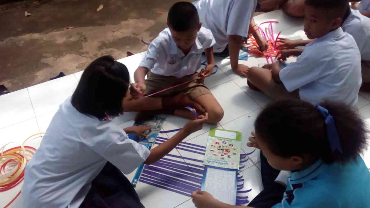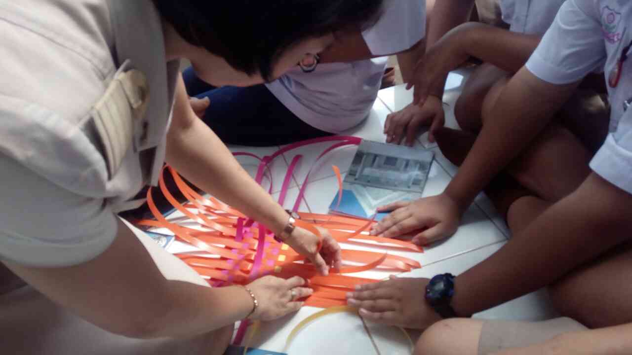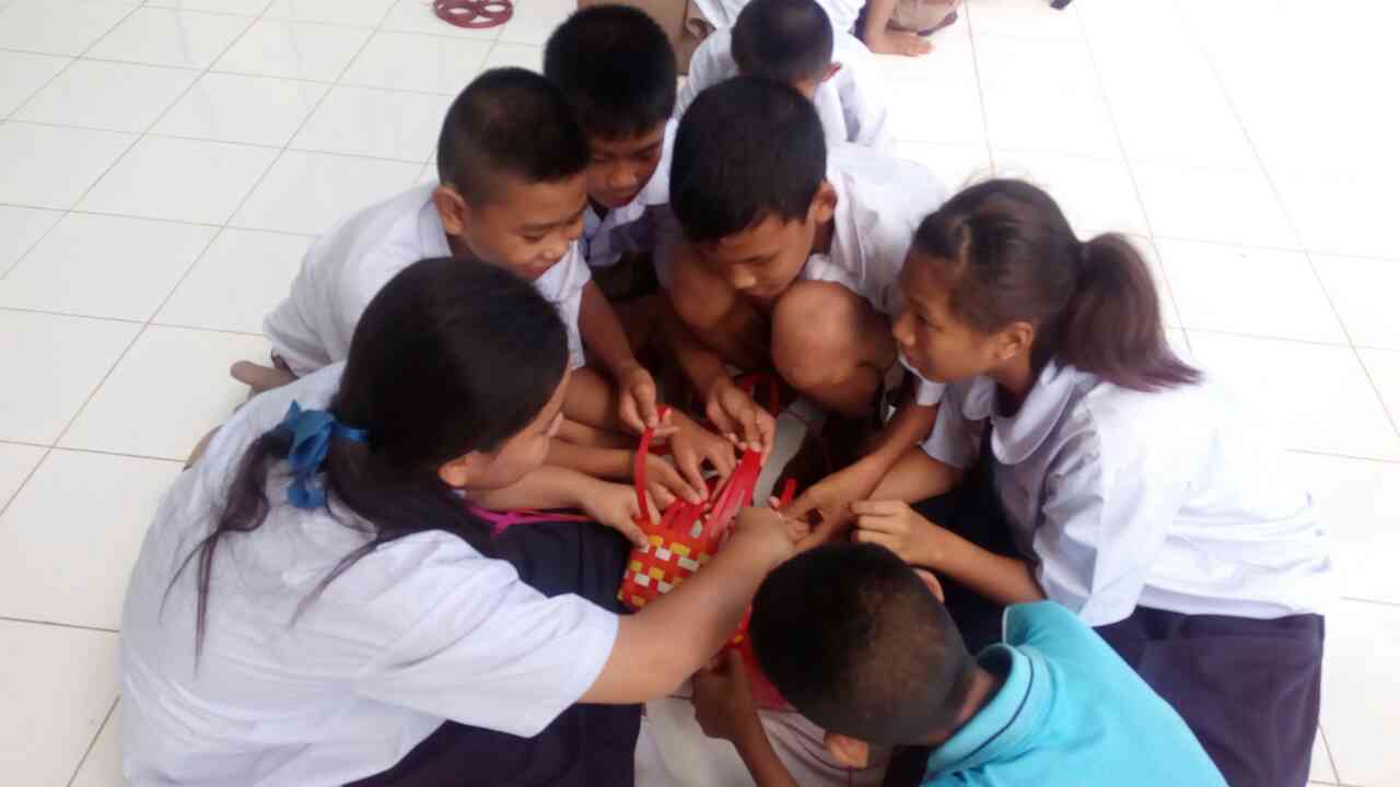 นักเรียนสานผลิตภัณฑ์จากเส้นพลาสติก กิจกรรม 1 โรงเรียน 1 อาชีพ 1ผลิตภัณฑ์