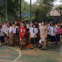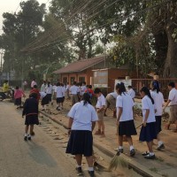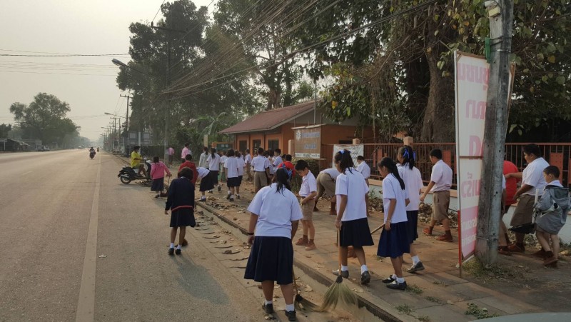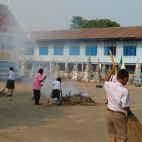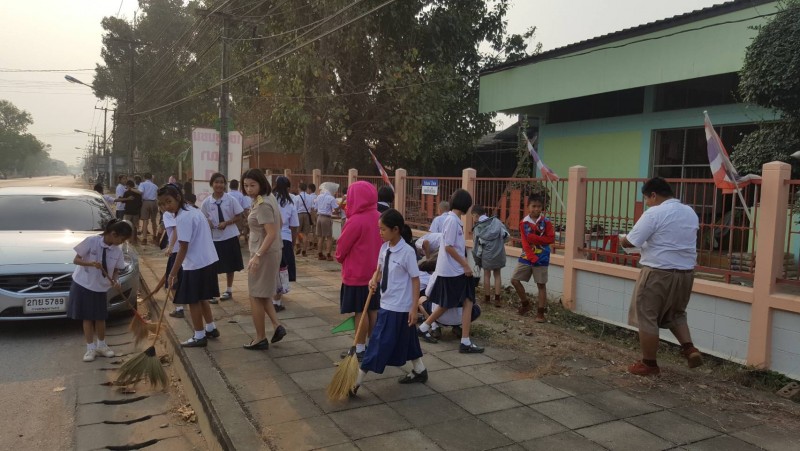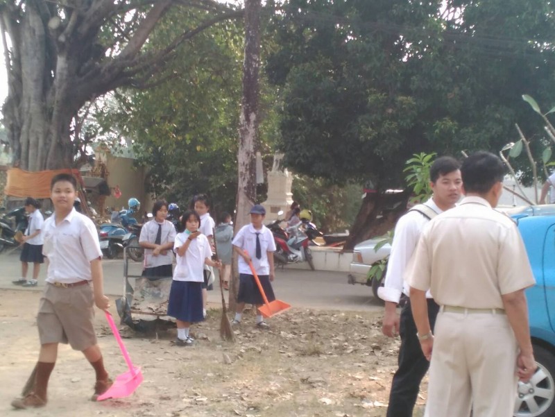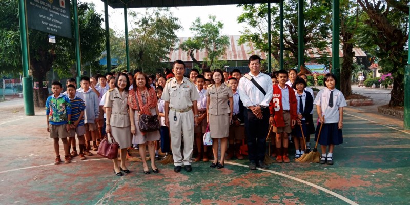 วันที่ 19 ก.พ.61 คณะครูนำนักเรียนป.4-6 ทำกิจกรรมจิตอาสา ร่วมกับชมรมคนรักในหลวงและชุมชน พัฒนาวัดอร