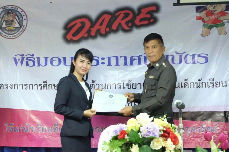 เมื่อวันที่ 22 กุมภาพันธ์ 2561 พิธีมอบประกาศนียบัตรให้กับนักเรียนชั้นป.5และป.6 โรงเรียนวัดอรัญญิการาม และนักเรียนป.6 โรงเรียนเทศบาลวัดไผ่ล้อม โครงการการศึกษาเพื่อต่อต้านการใช้ยาเสพติดในเด็กนักเรียน (DARE) |
