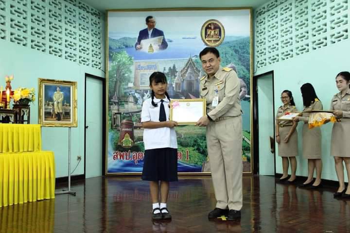12 ตุลาคม 2563 เด็กหญิงกัญญ์ณัชชา แก้วกระจ่าง รับเกียรติบัตรกิจกรรมวันภาษาไทย