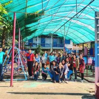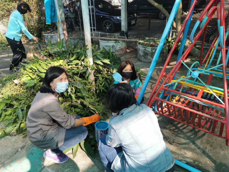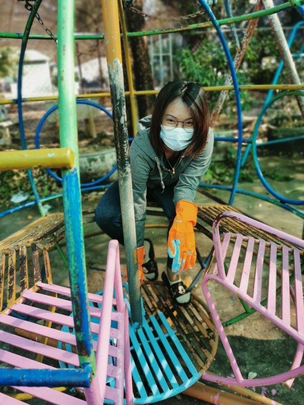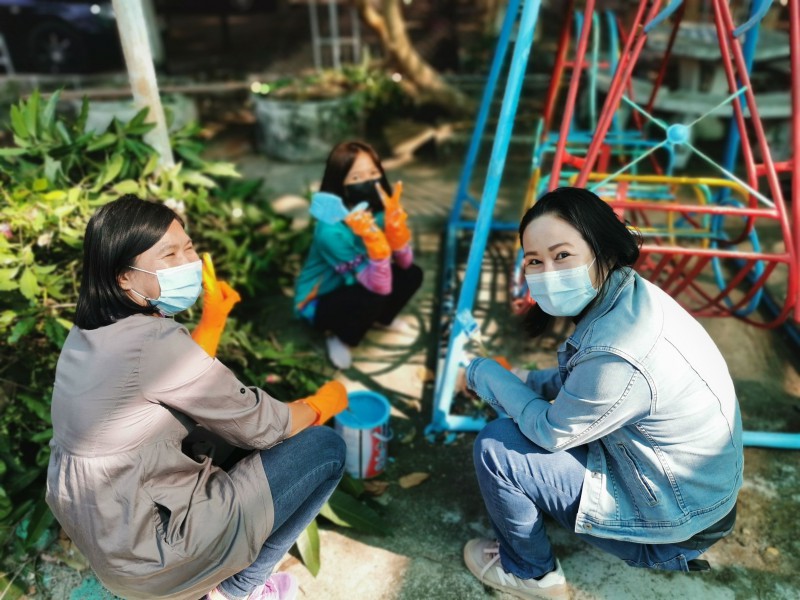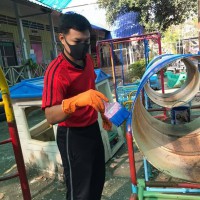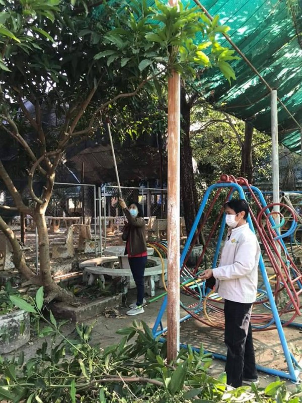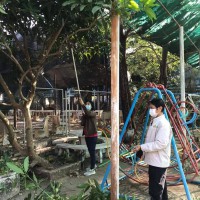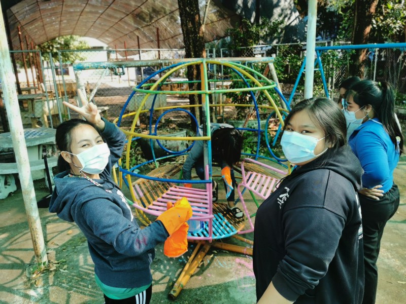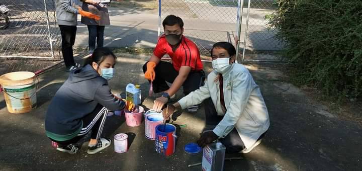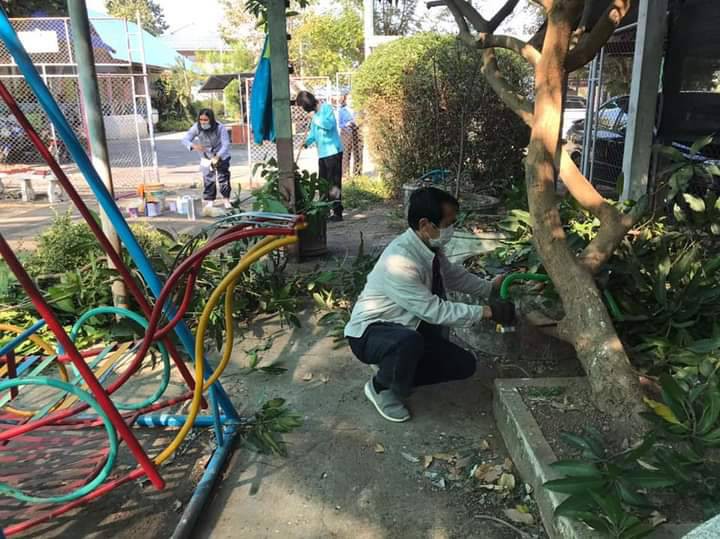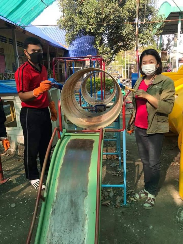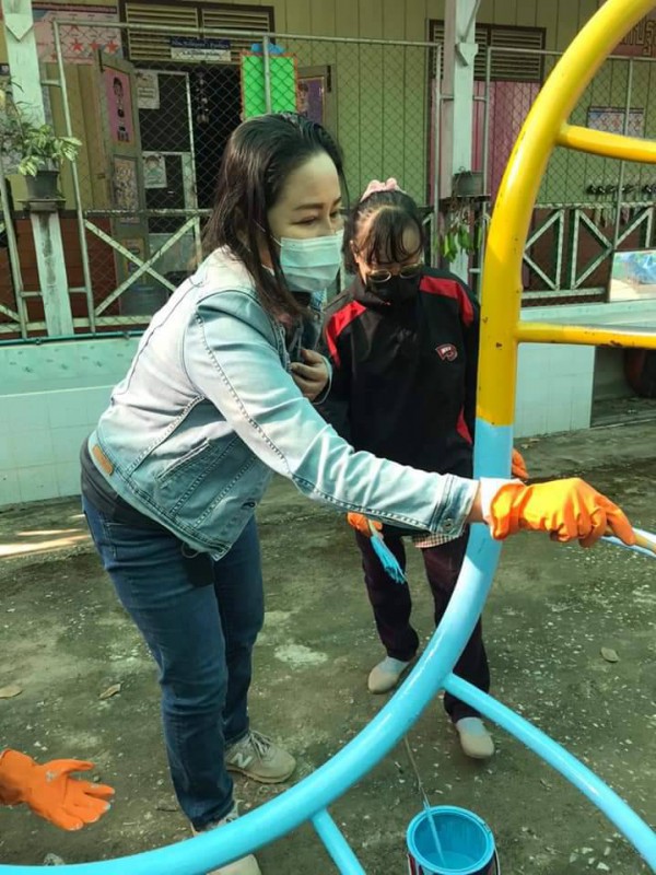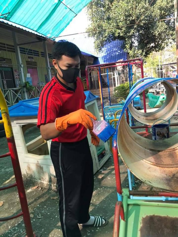 วันที่ 14 มกราคม 2564 คณะครูบุคลากรร่วมกันทาสีสนามเด็กเล่นเพื่อปรับปรุงภูมิทัศน์ของโรงเรียน