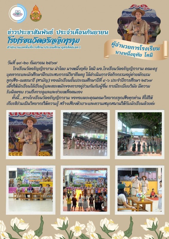 วันที่ 20-23 กันยายน 2567 โรงเรียนวัดอรัญญิการาม จัดกิจกรรมเข้าค่ายลูกเสือ เนตรนารี ปีการศึกษา 2567
