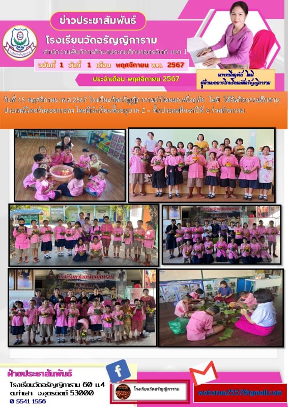วันที่ 15 พฤศจิกายน 2567 โรงเรียนวัดอรัญญิการามจัดกิจกรรมสืบสานประเพณีไทยวันลอยกระทง