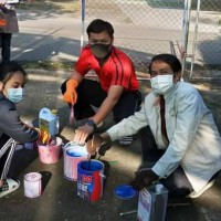 วันที่ 14 มกราคม 2564 คณะครูบุคลากรร่วมกันทาสีสนามเด็กเล่นเพื่อปรับปรุงภูมิทัศน์ของโรงเรียน
